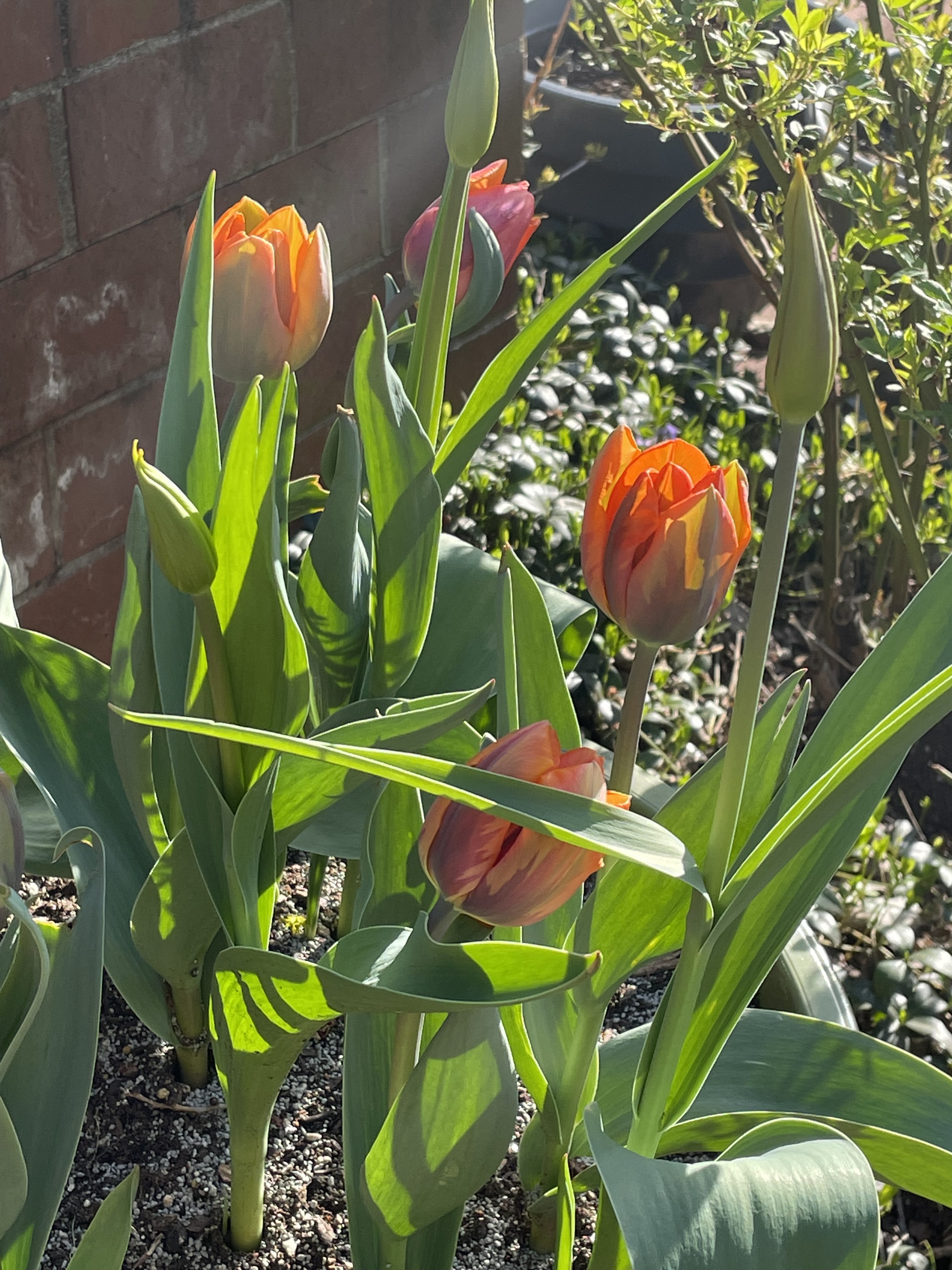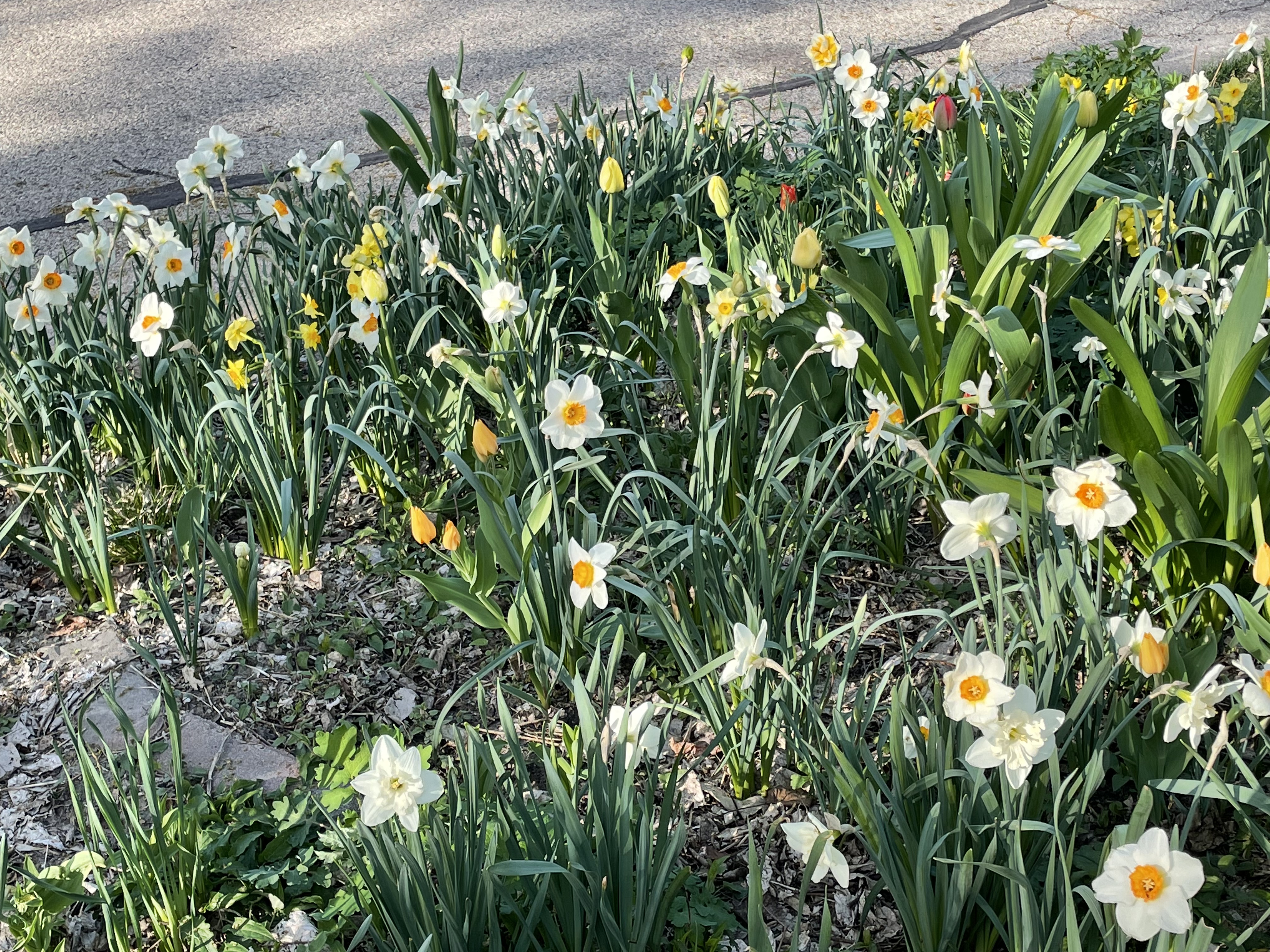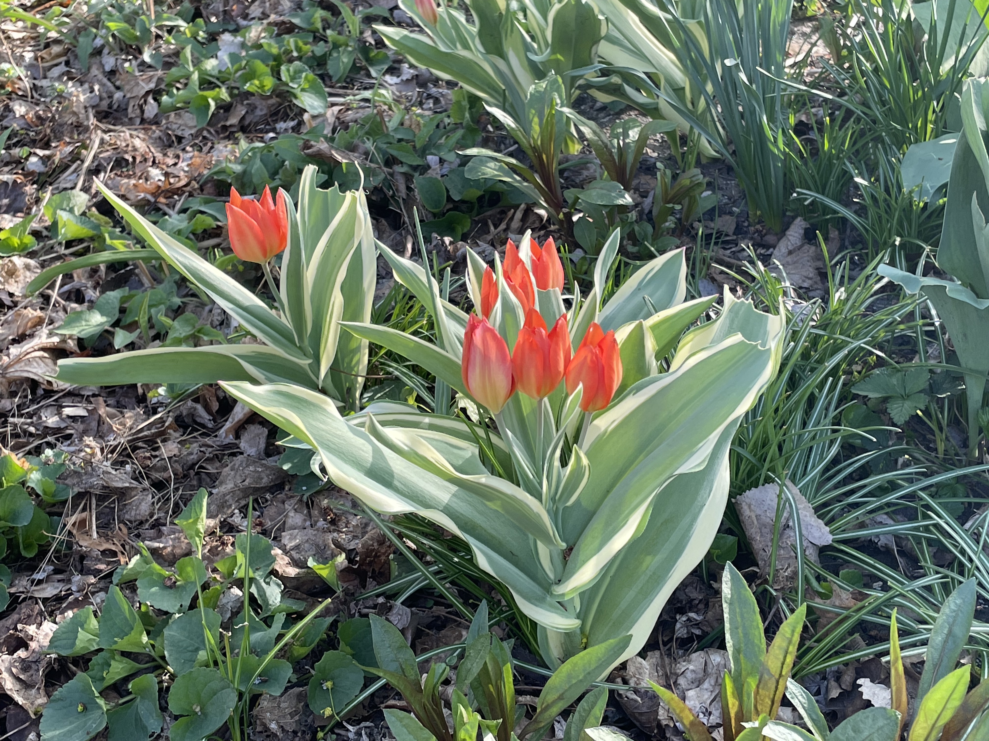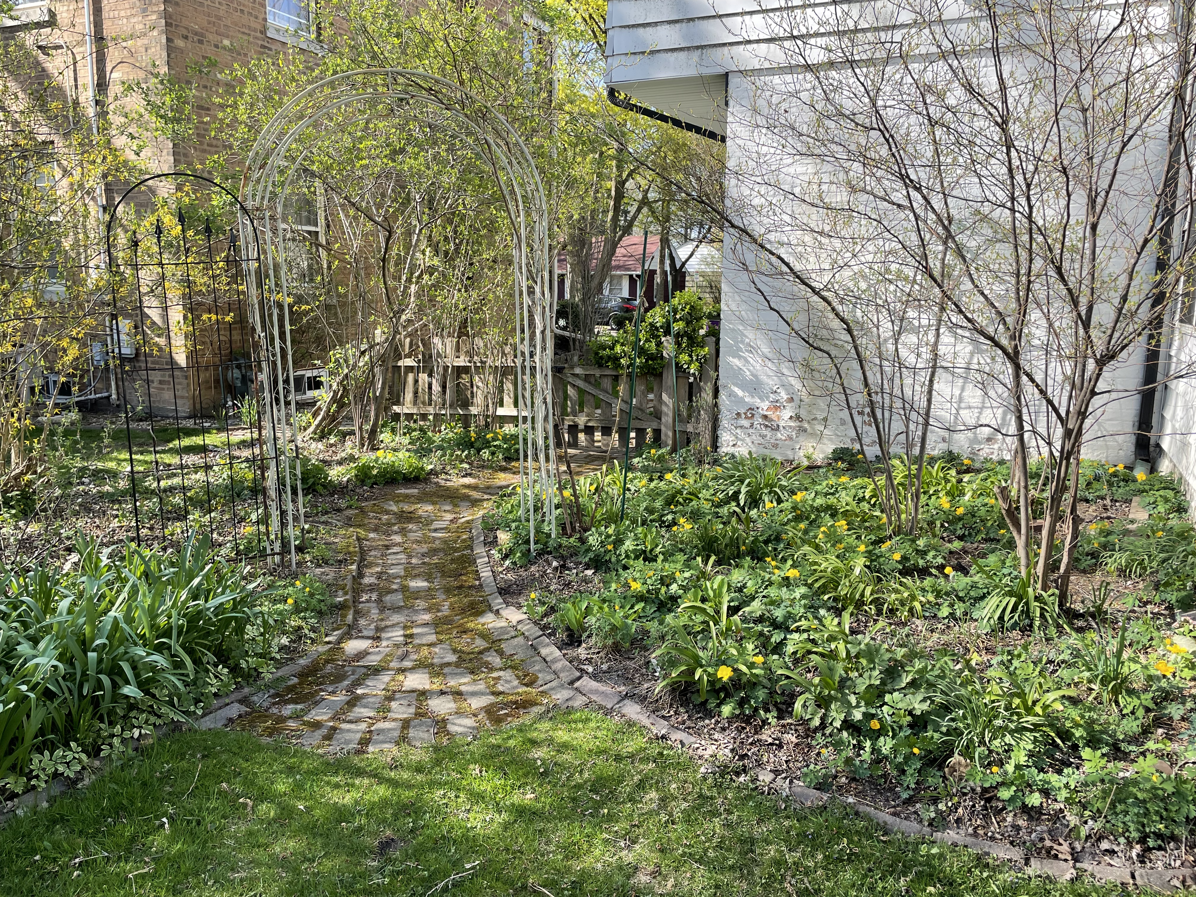 I realize I can’t show you everything, and it all moves so fast — especially since we had weather in the upper 70s last week. So here is a collage of blooms from the front yard. I’m so happy that the Princess Irene tulips made it through the winter (in a pot, in the garage). There’s the Ostrich ferns, just poking their heads up. Lower left, the clove currant is wafting its scent across the sidewalk.