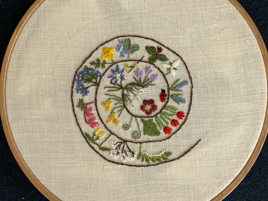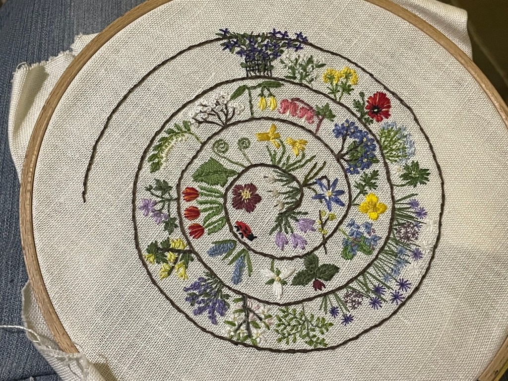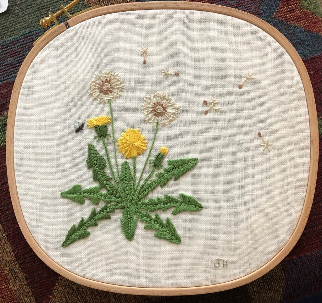 Delightful embroidered flowers, I especially like the dandelion, it’s perfect! Haven’t done any needlework in decades, but as a flower child of the 1960s I embroidered many pairs of jeans 🙂