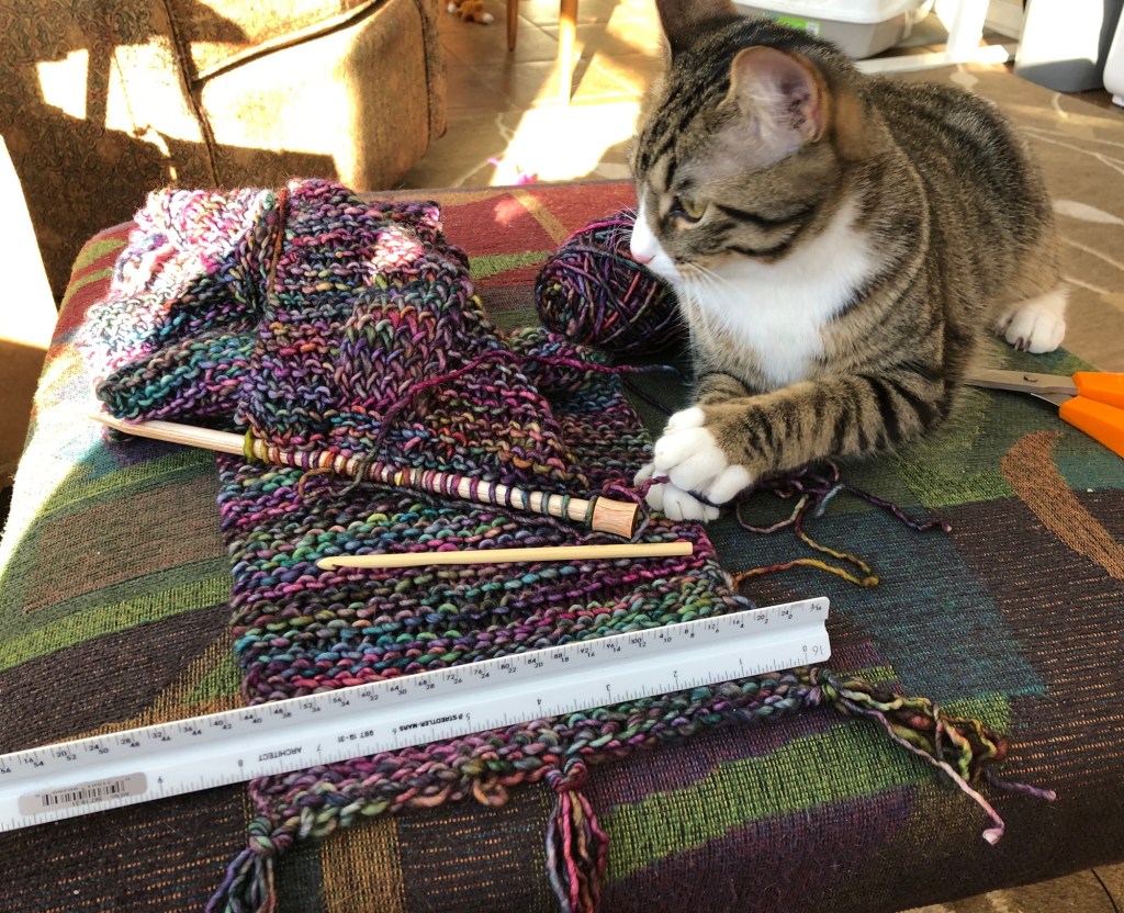 All of my female relatives on both sides did needlework. As a child, I never laid my head on a pillowcase that wasn’t crocheted or appliquéd. I slept under a handmade quilt — little girls with sunbonnets — made just for me by my paternal grandmother and great-aunt, Grossmutter and Tante Olga, who had long cold winters to while away in rural South Dakota. They taught me to crochet and also to tat (a method of making lace with a handheld shuttle). I haven’t had the patience for either craft in a long time, and have probably forgotten how. I have knitted a few scarfs and the occasional vest, with more enthusiasm than skill.