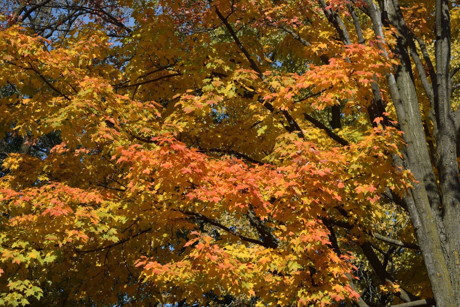 Here we are in the second half of October and the normal fall color is still slow to set in. Most of the street trees are still green, but some of the Maples have turned orange and red.