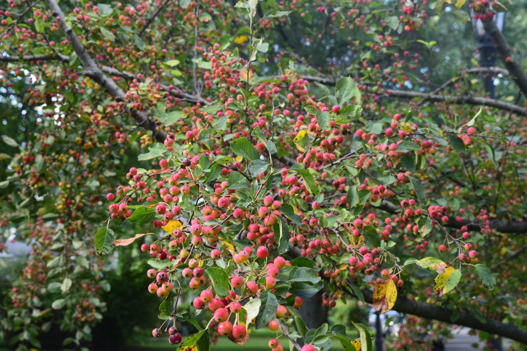 There are so many fruits on our ‘Donald Wyman’ Crabapple that the branches are bending under the weight.