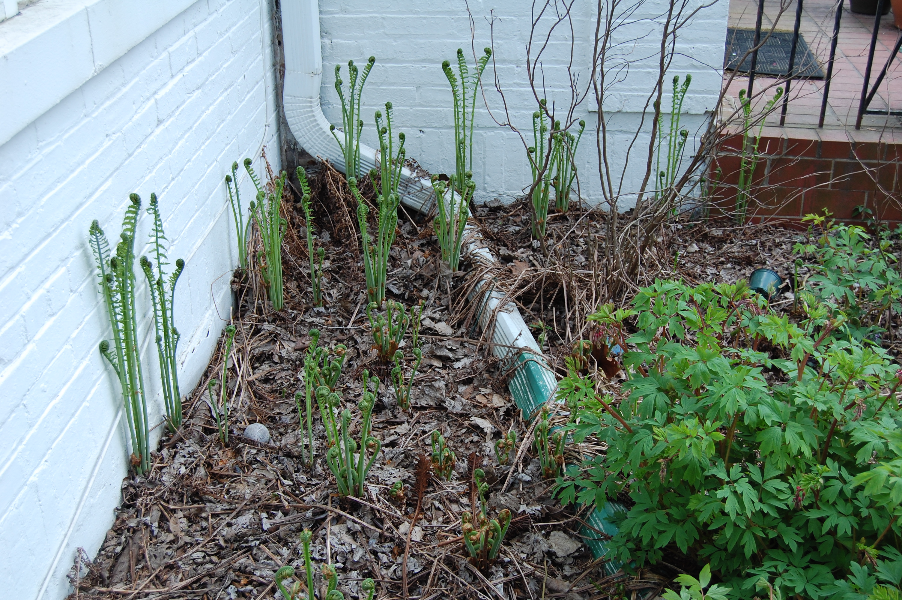 You can see how they respond to the warmer soil closer to the house. I can tell that soon I will be supplying free ostrich ferns to whoever is willing to take one.