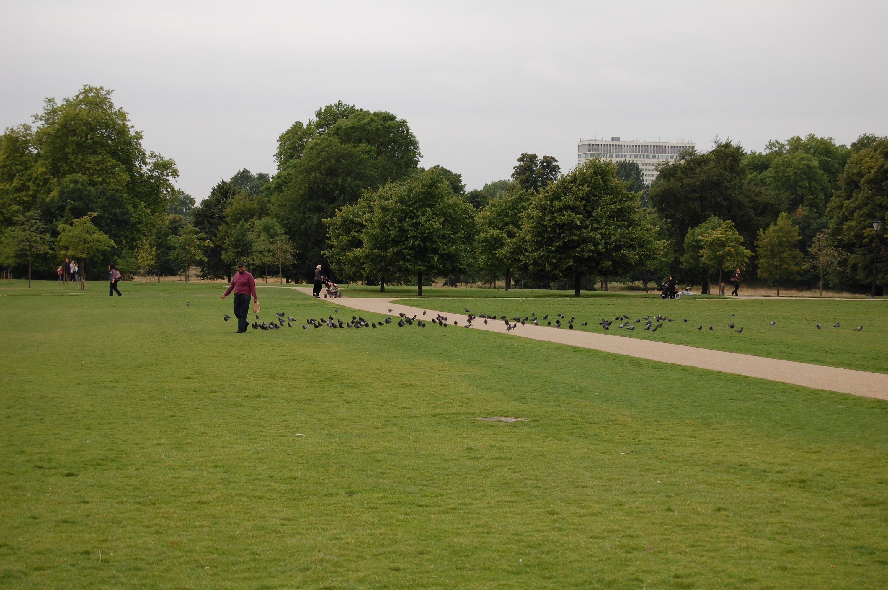 Speaking of birds to feed, this guy has his own personal tribe of pigeons. Lots of Hyde Park is just open turf.