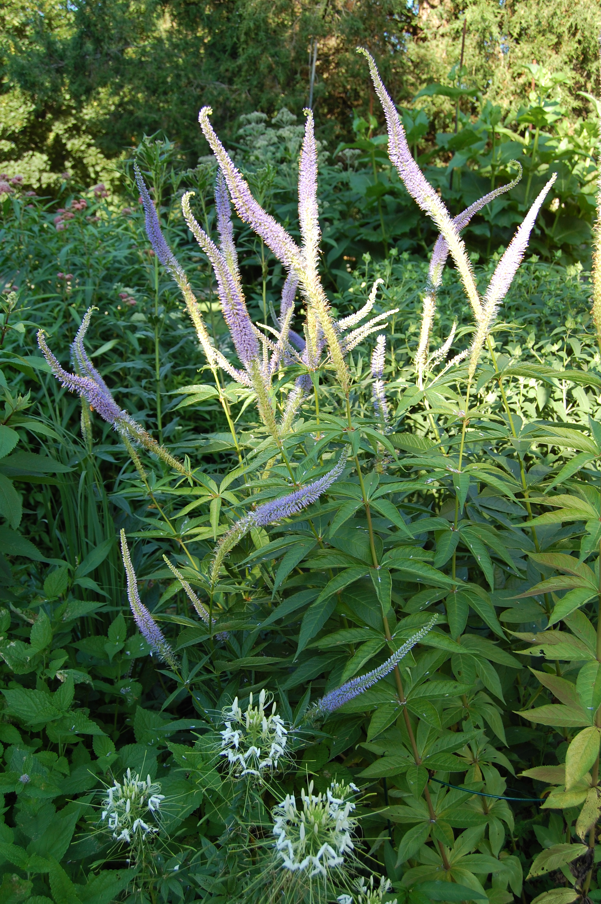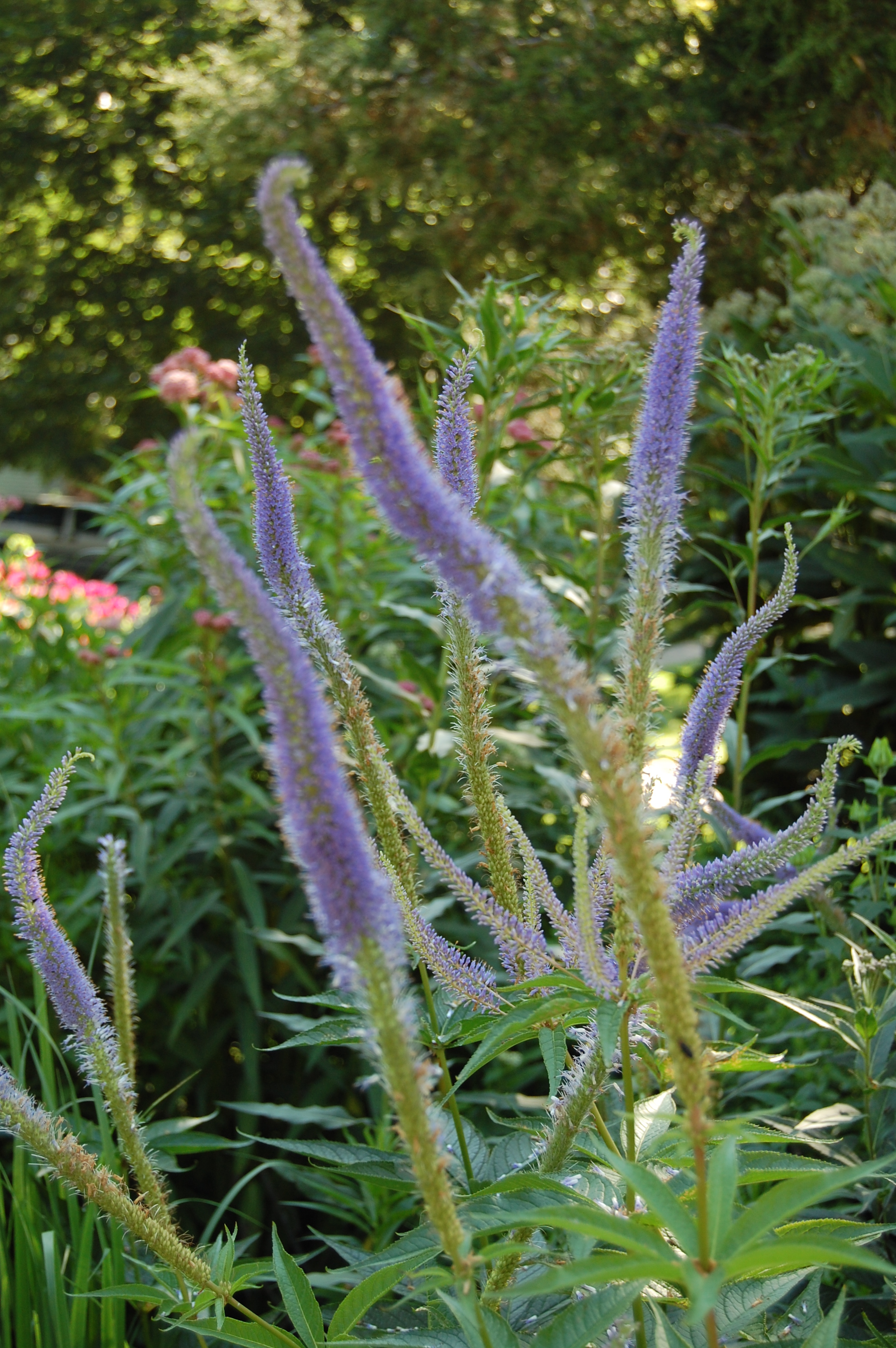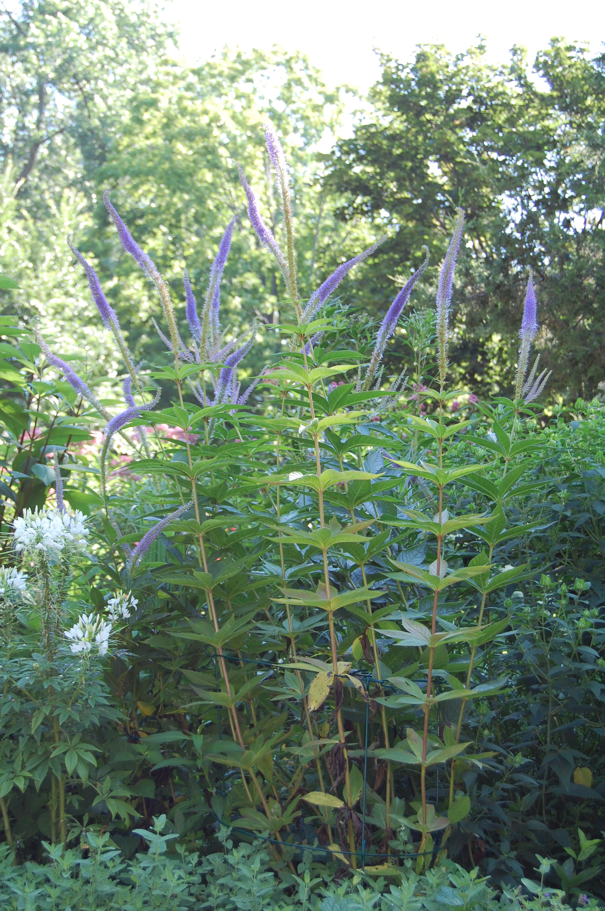 This is the third summer that Culver’s Root ‘Inspiration’ (Veronicastrum virginicum) is growing in the sunny driveway border. In my experience it is an excellent plant if you want something vertical with blue color in early to mid-summer. Even my son’s girlfriend, who fervently hopes that my garden obsession is not hereditary, is enthusiastic about this plant.