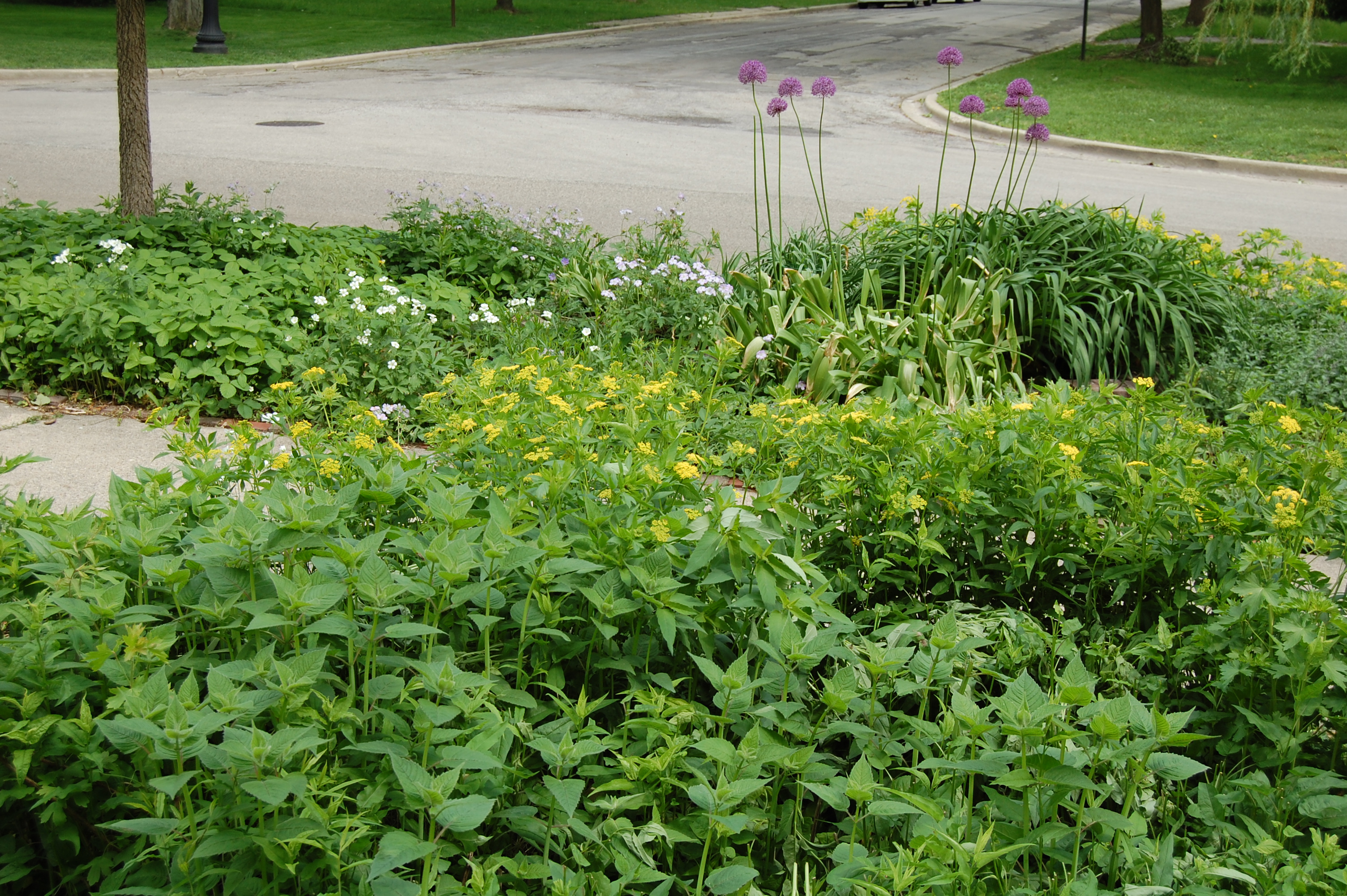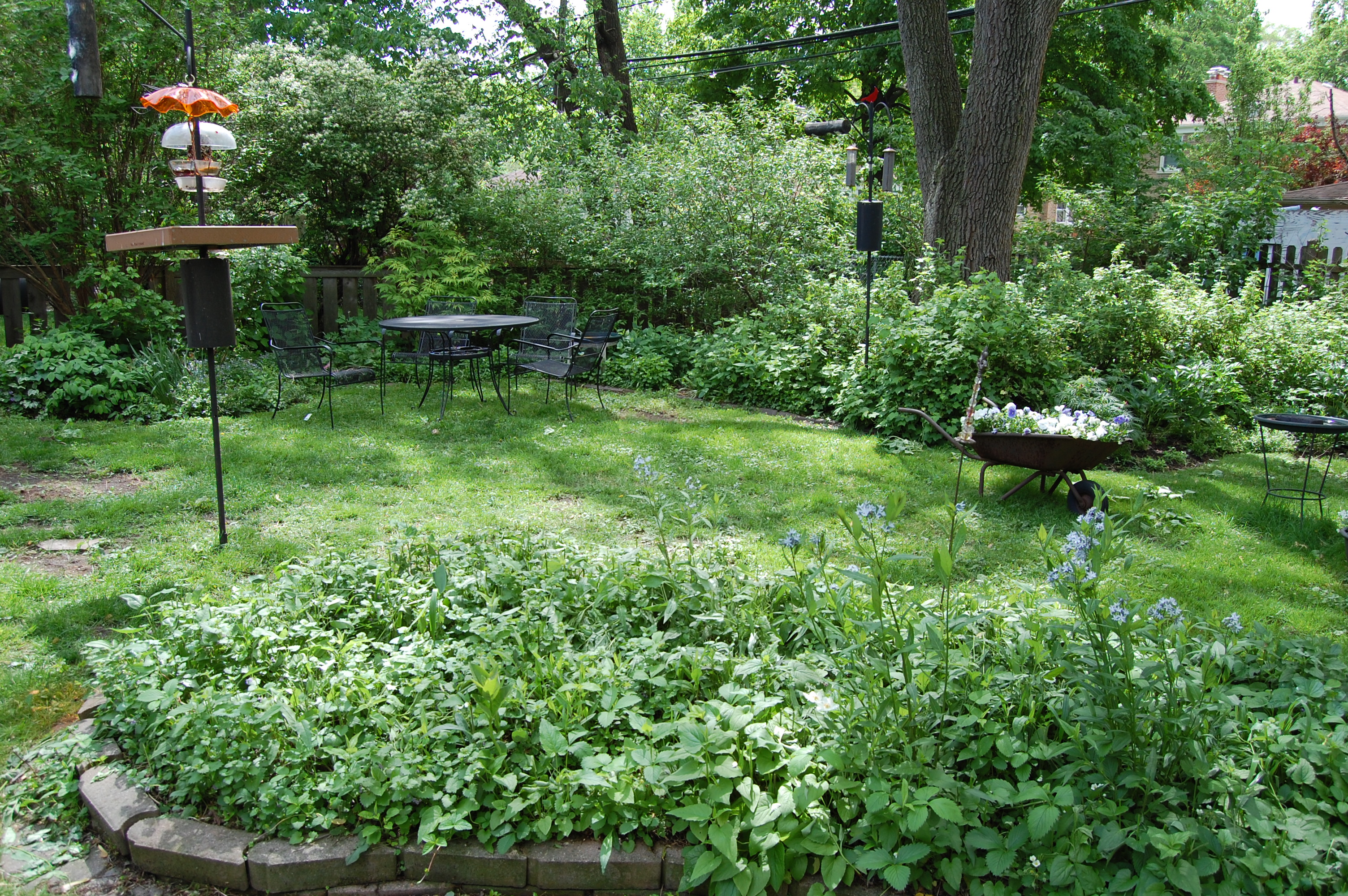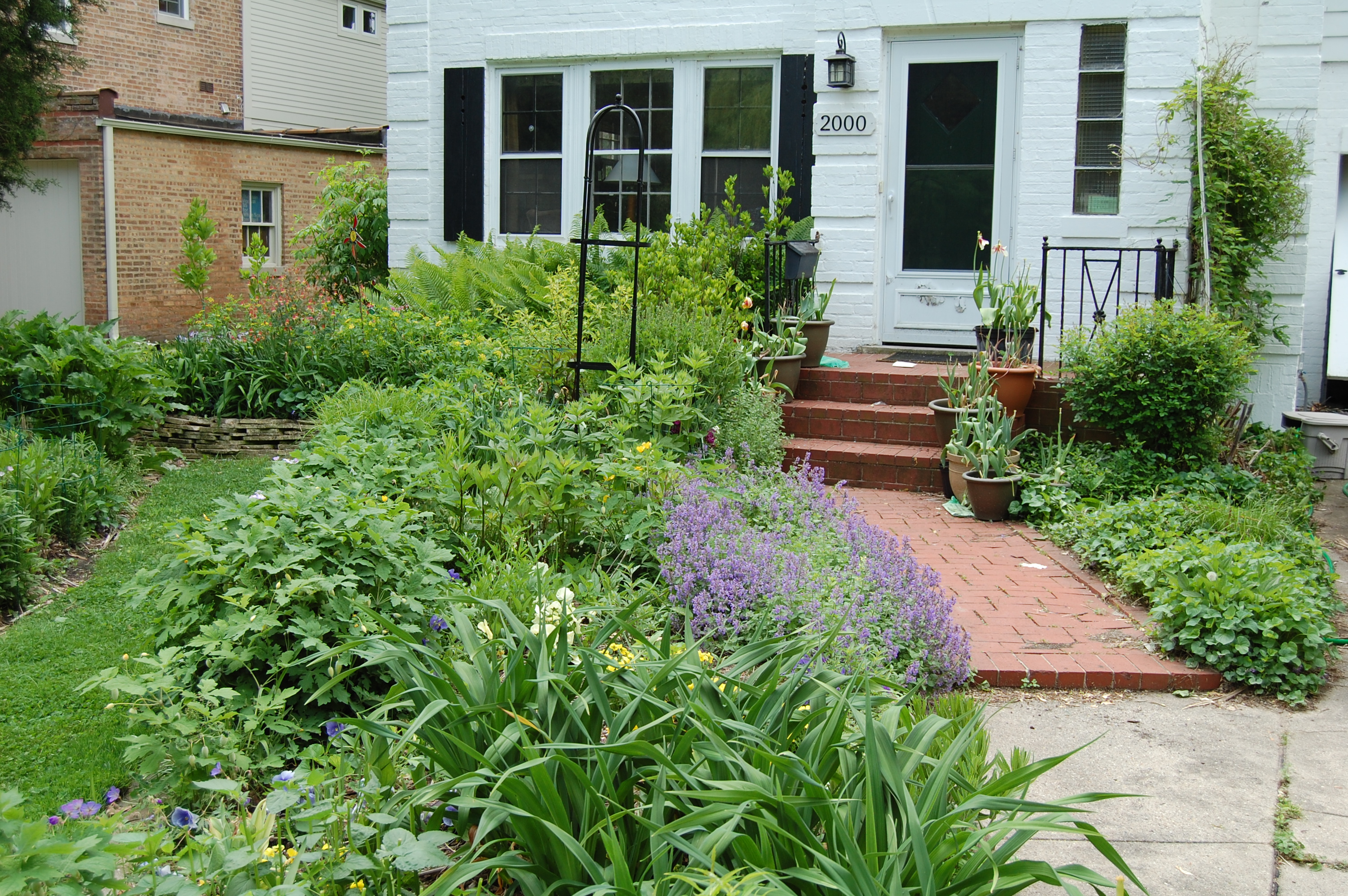 So I drove to two of my favorite local garden centers, Anton’s here in Evanston and Gethsemane in Chicago. Typically these places are mobbed on early June weekends. However, the cold and the intermittent thunderstorms did wonders for reducing the crowds, leading to a relaxed if excessively moist garden shopping experience. Here’s what I got: