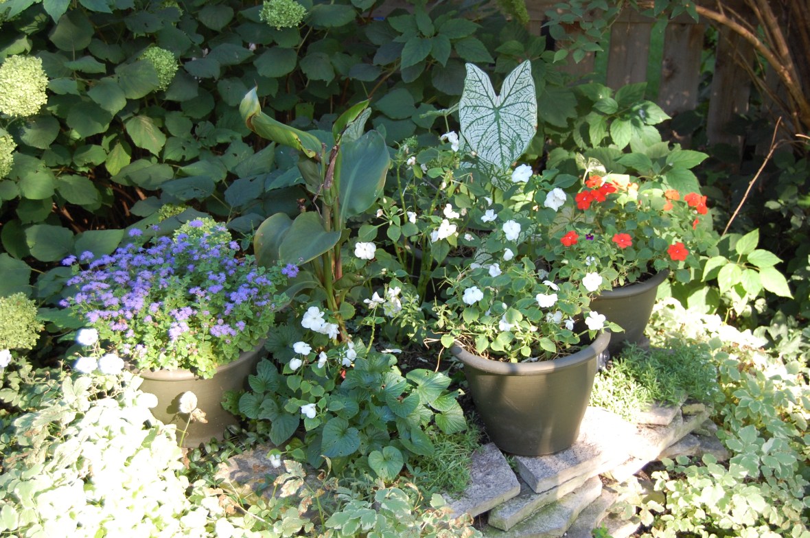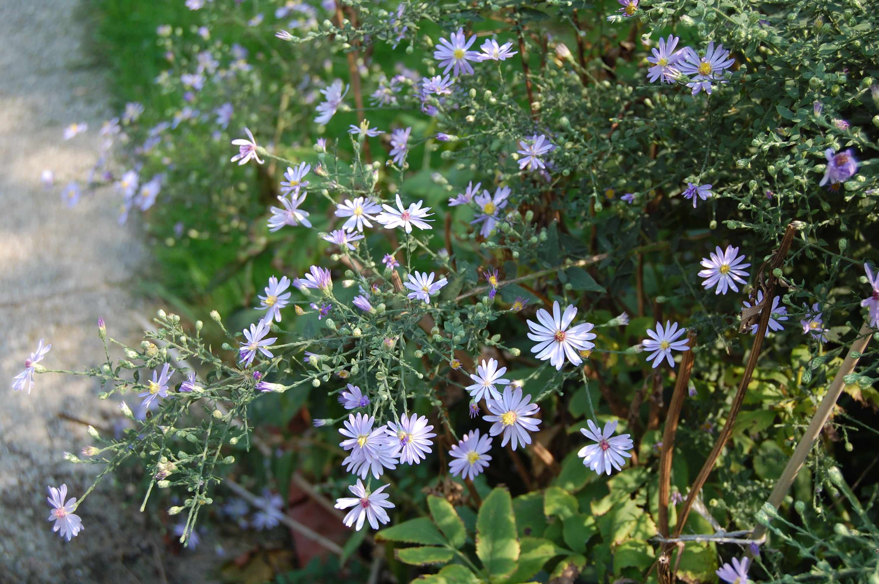 I also got to see my brother’s garden, though at this point in October there isn’t much color. I did admire his water feature, however. The little pond has its own waterfall created by pumping water up a hole drilled through a small boulder. Shallow depressions have been cut in the boulder for the benefit of the birds.