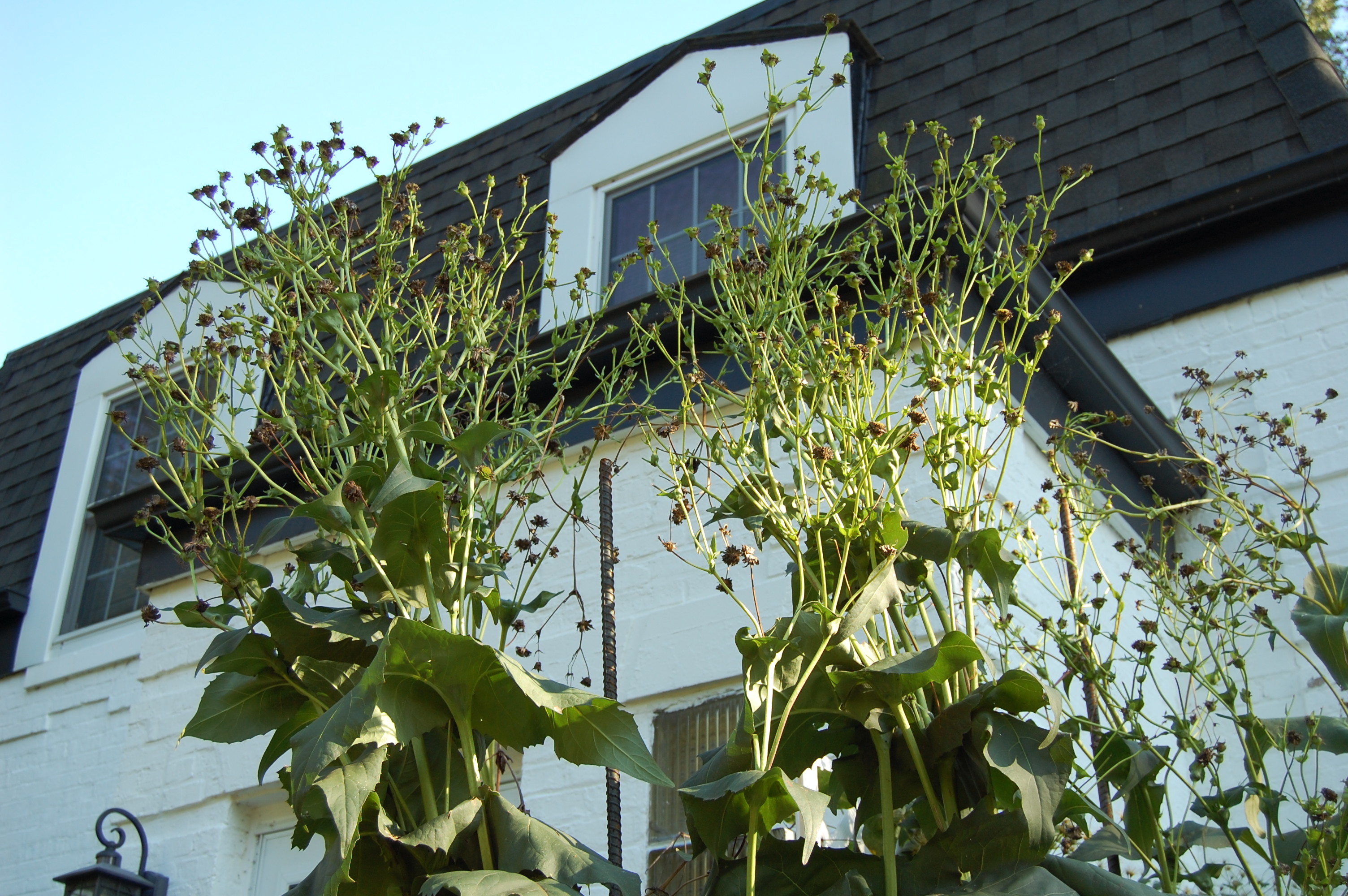 Blurring the line between weeds and ornamentals, Richard is growing Deadly Nightshade (Atropa belladonna) up the side of his house. They do have colorful berries …