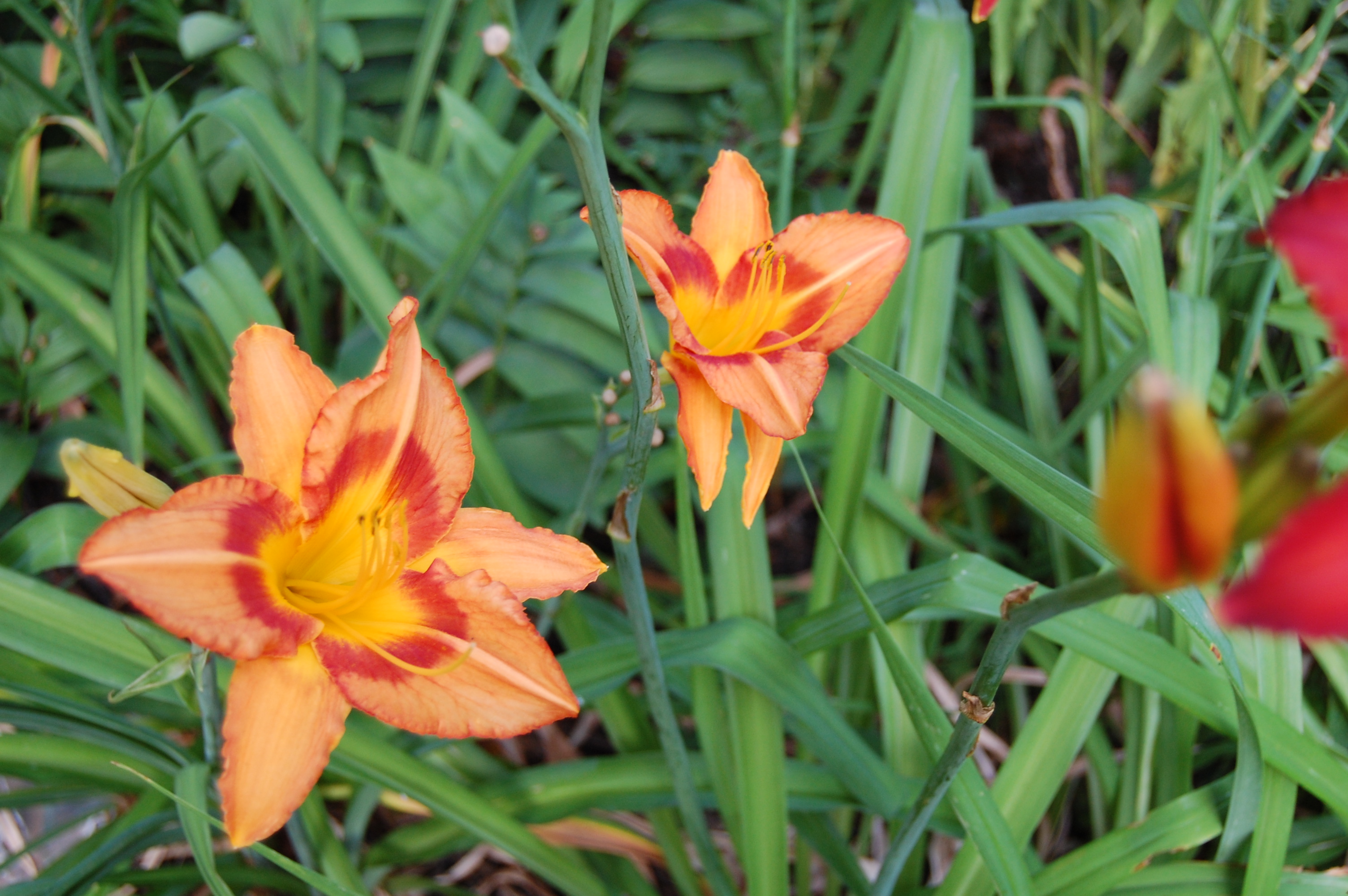 - Orange Cosmos (Cosmos sulphureus). First time in my containers, and they are winners. Orange cosmos actually come in either red, clear orange or red streaked with orange. They definitely get your attention from a distance. Very good for filling in, but they also have more height than I expected. They’re easy to grow from seed. Will definitely use next year.