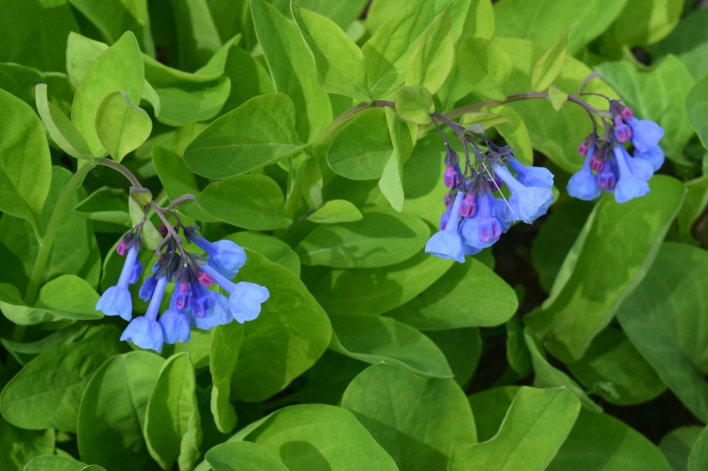 How can you not love Virginia Bluebells (Mertensia virginica)? They are coming into their own in our garden right now. The clusters of soft blue tubular flowers are fantastic, especially combined with the pink and purple buds.