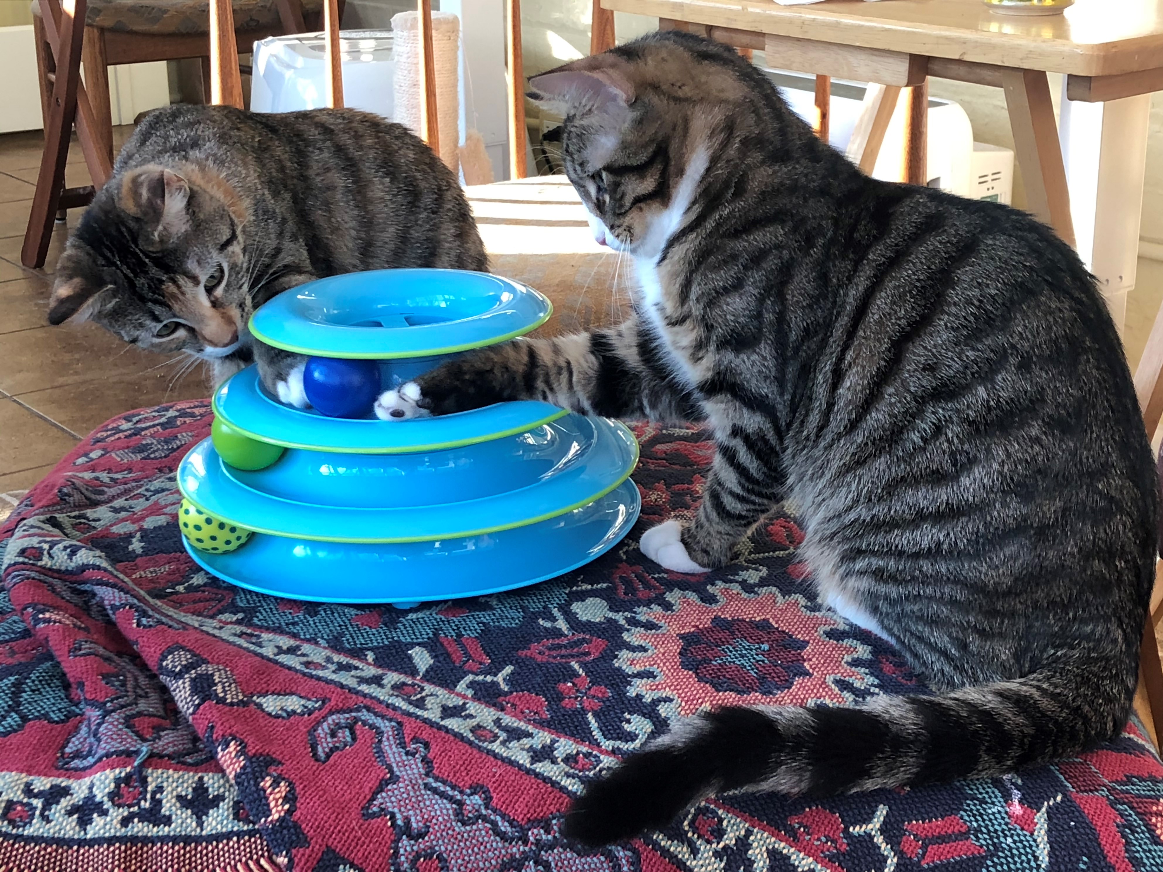 We got our two cats, Molly and Walter, last August. They were part of a litter being fostered by our friend Joanna for a local cat shelter.