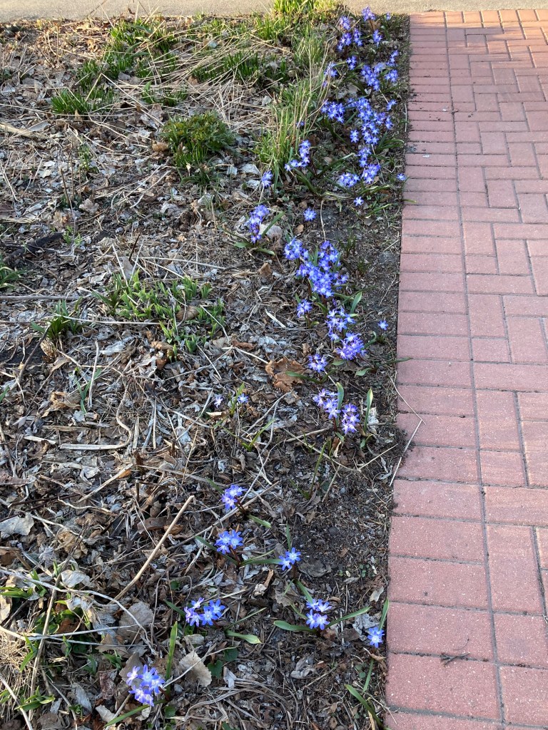 When we put in the new driveway the narrow strip of lawn bordering the Left Bank Bed became even narrower. So naturally, I decided to dig it up. The new garden space was filled, among other things, with Glory-of-the-Snow (Scilla forbesii, formerly Chionodoxa forbesii).