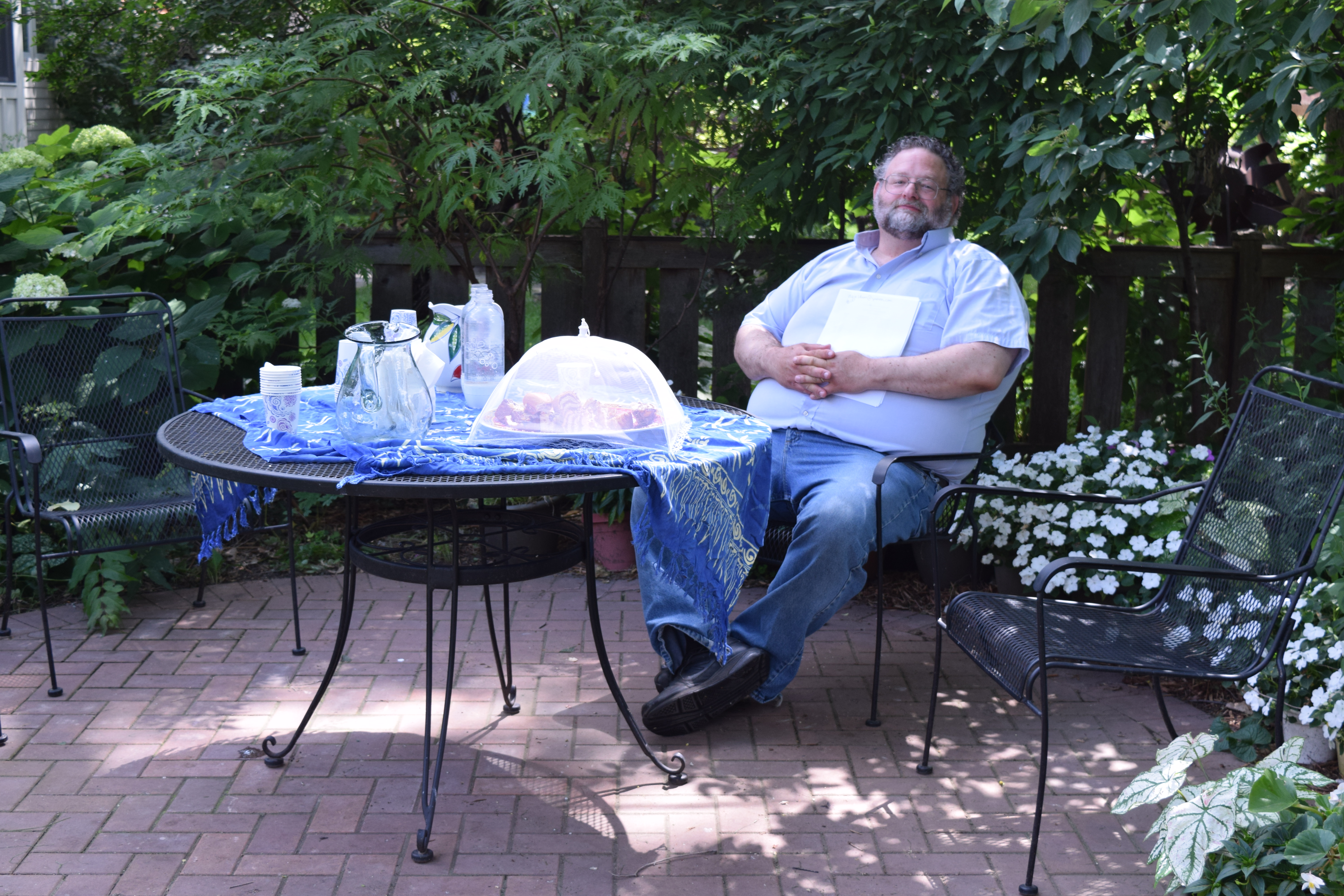 In the back Judy had set out ice tea, water and coffee cake cut in little pieces. Happily people were not too shy to help themselves.