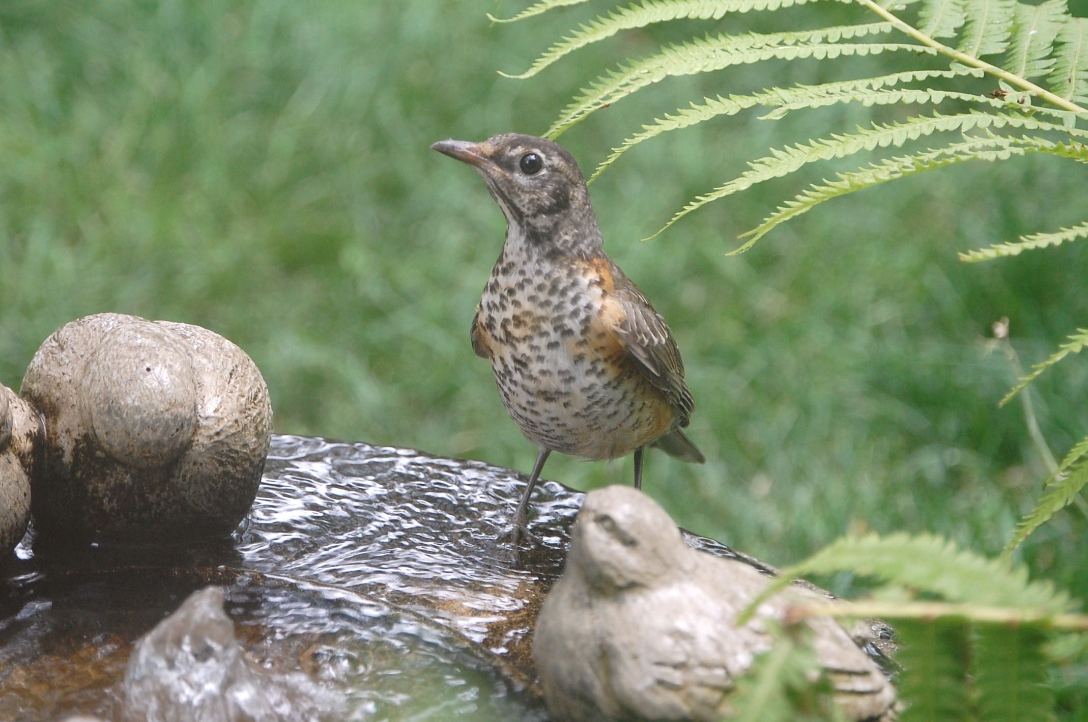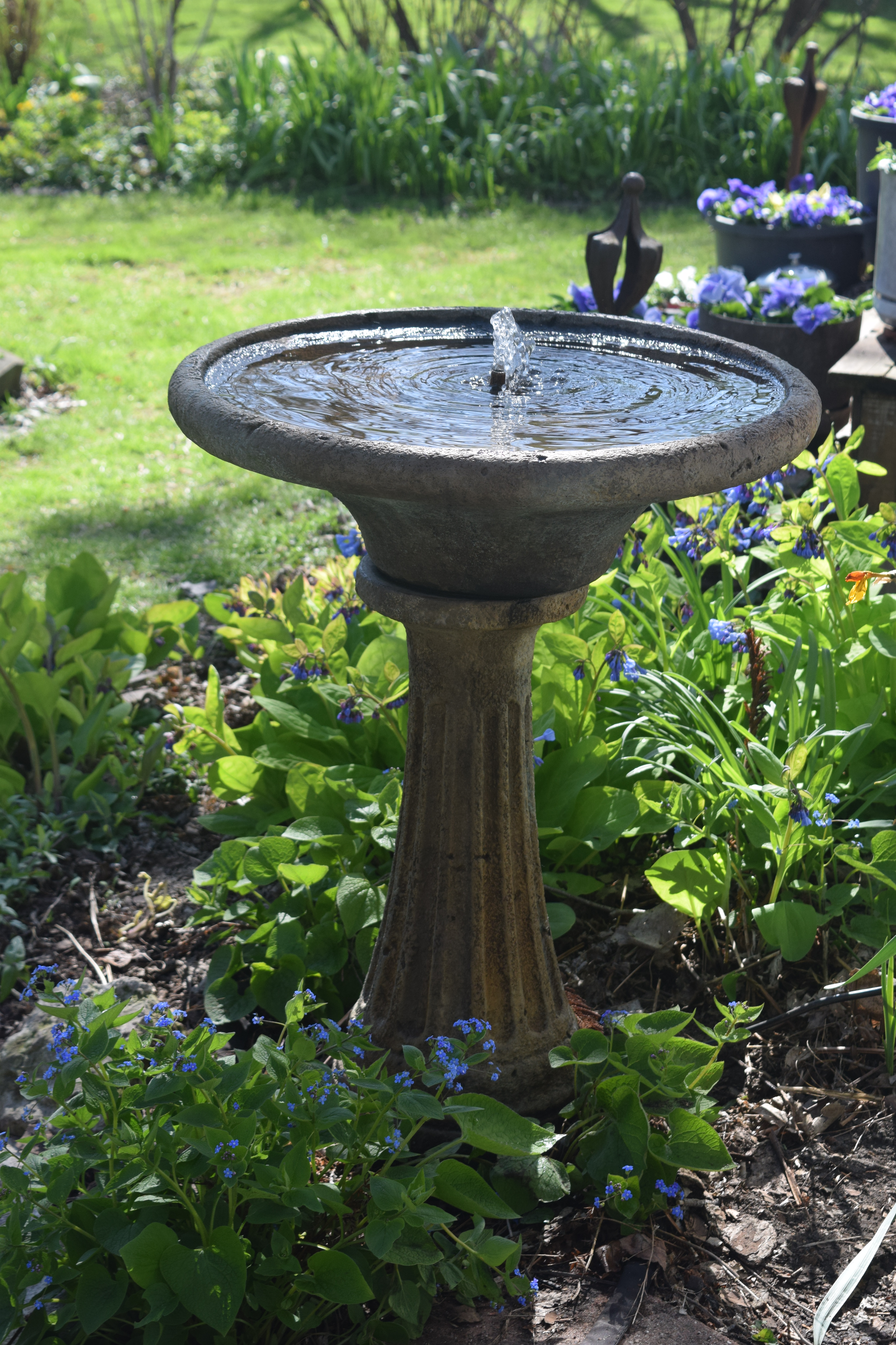 Like the old fountain, the new one makes a nice gurgling sound, which is pleasing to people and also attracts birds.