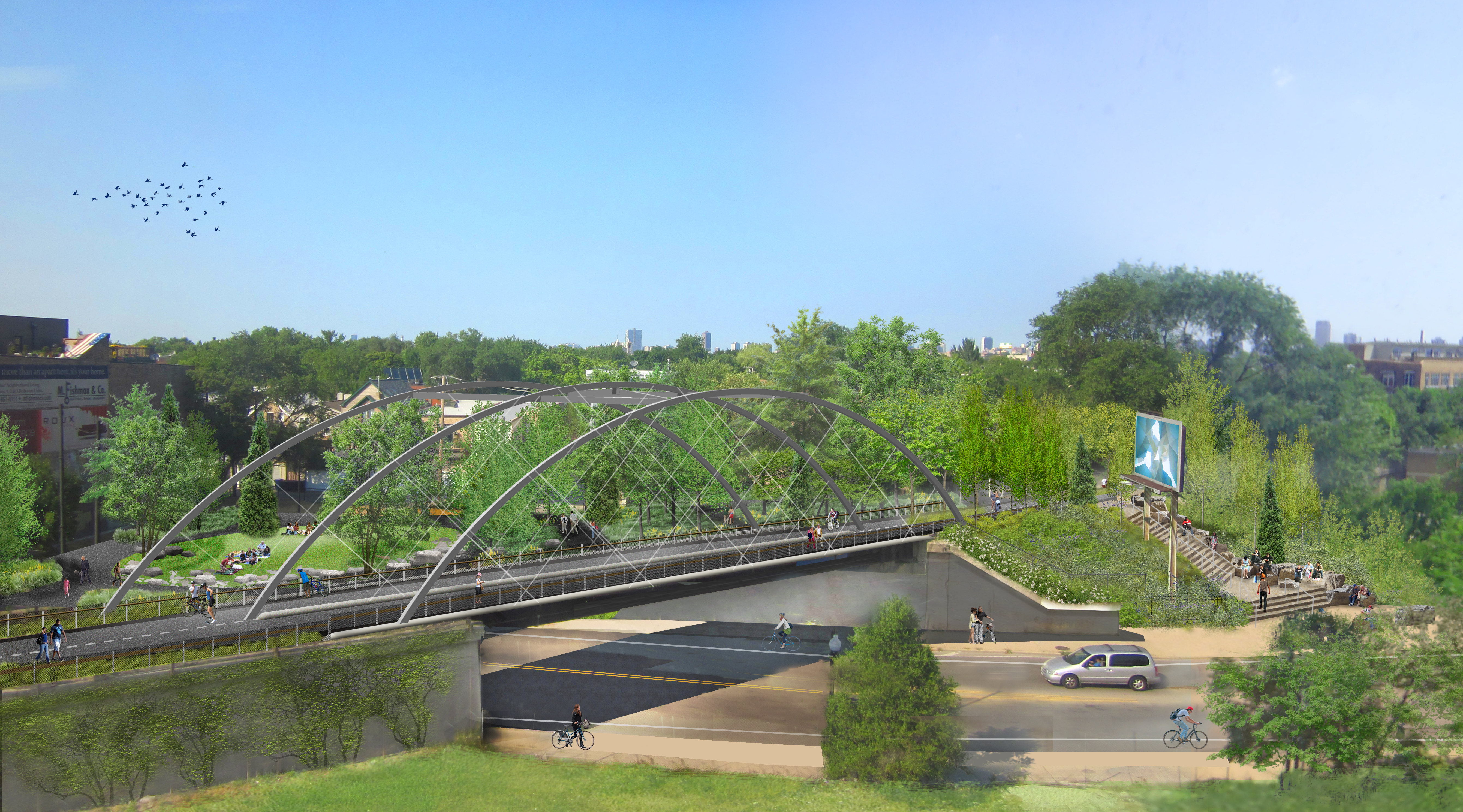 The 606 takes Chicago’s legacy of great parks to new heights. The 606 has the elevated Bloomingdale Trail [currently an unused rail line] as its centerpiece, and it will be connected to six neighborhood parks at ground level. It will also have a wheel-friendly event plaza, an observatory, art installations, and educational programming.