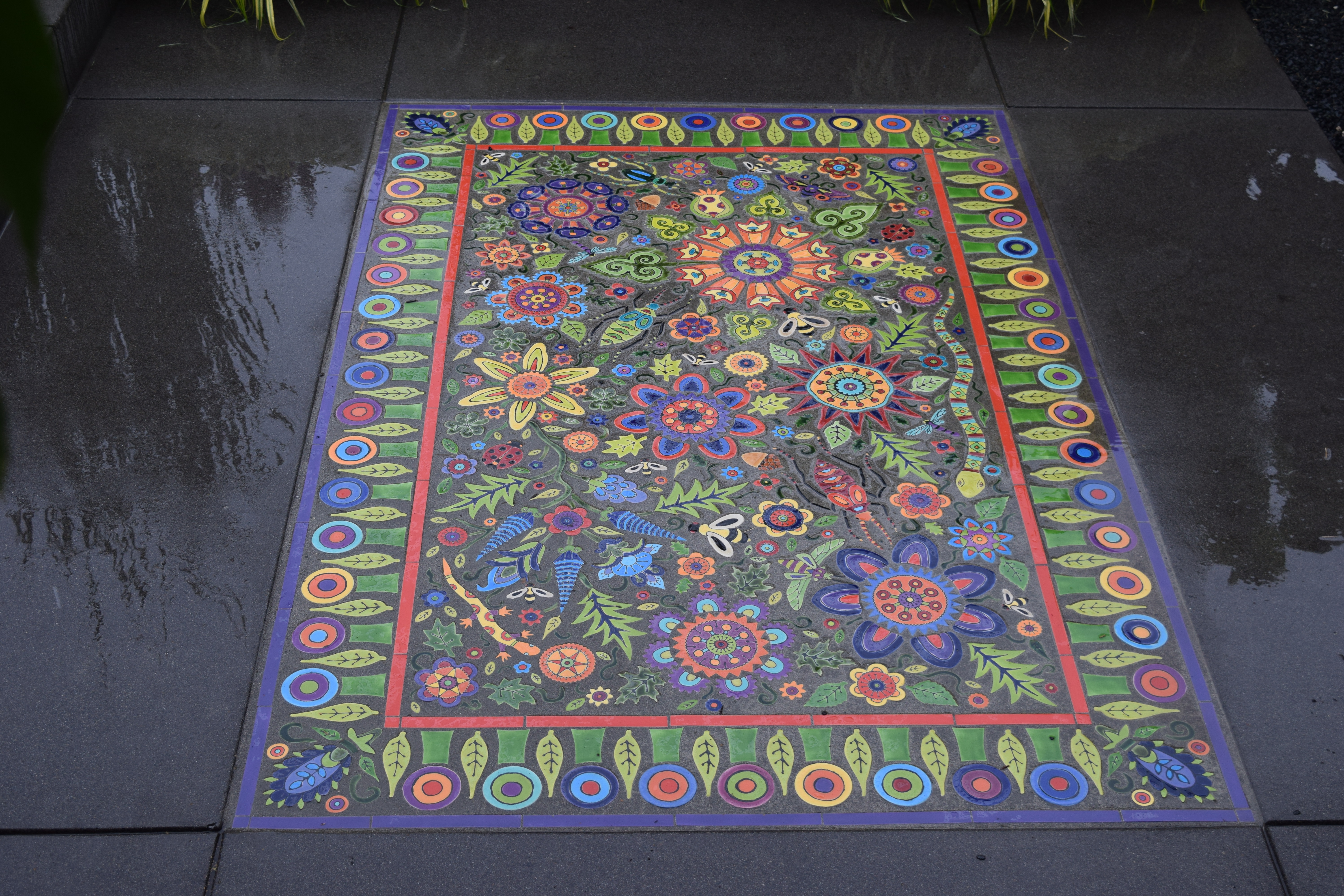 This colorful carpet built into the path provides a sort of welcome mat for the area around the fire pit.