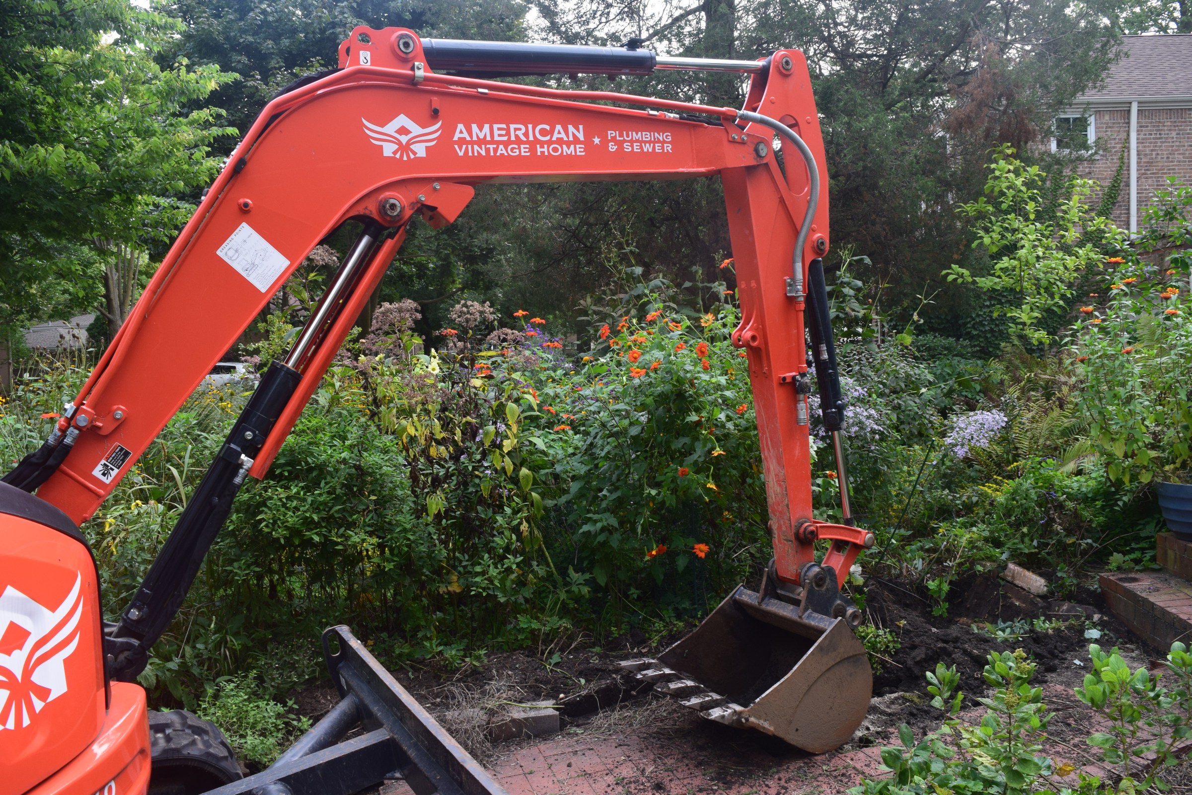 That’s how it felt last Wednesday morning, as the sewer repair crew arrived with their much-larger-than-expected excavator. (Though the excavator’s color did nicely echo the orange of the Mexican Sunflowers.)