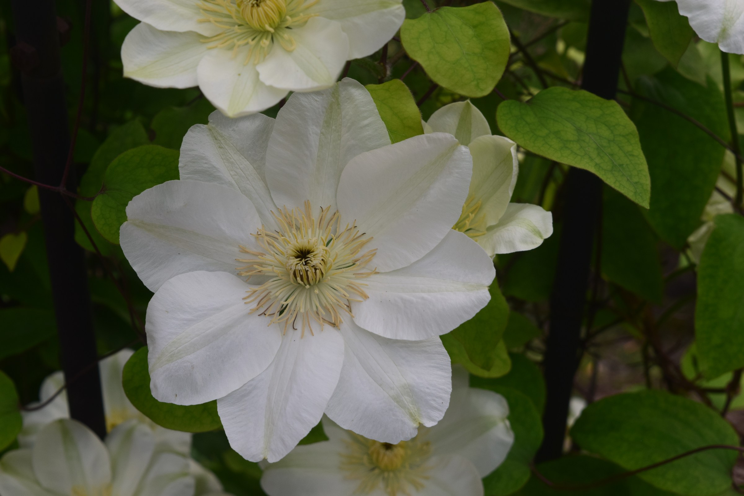 This is not one of those times when the garden is a riot of color. It is bursting with lushness and growth, true, but tranquil greens predominate. There are some blooms, but mainly in cool whites and lavenders.