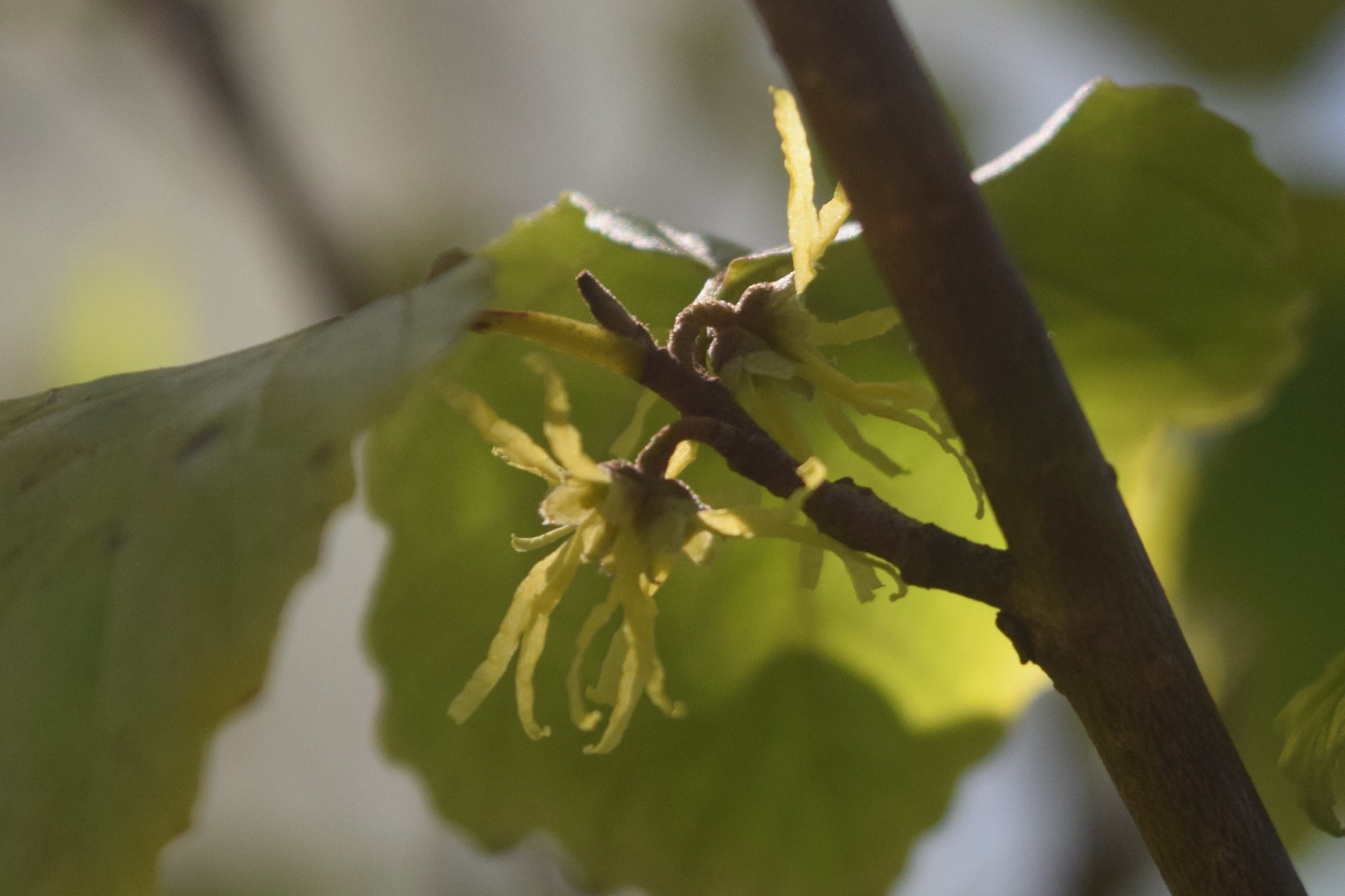 There’s an American Witch-Hazel (Hamamelis virginiana) planted on the east side of the house. Rabbits chewed it to the ground every year before I protected it with hardware cloth. Then it bounded upward and quickly reached its current height of about 10′. It’s still growing, I think.