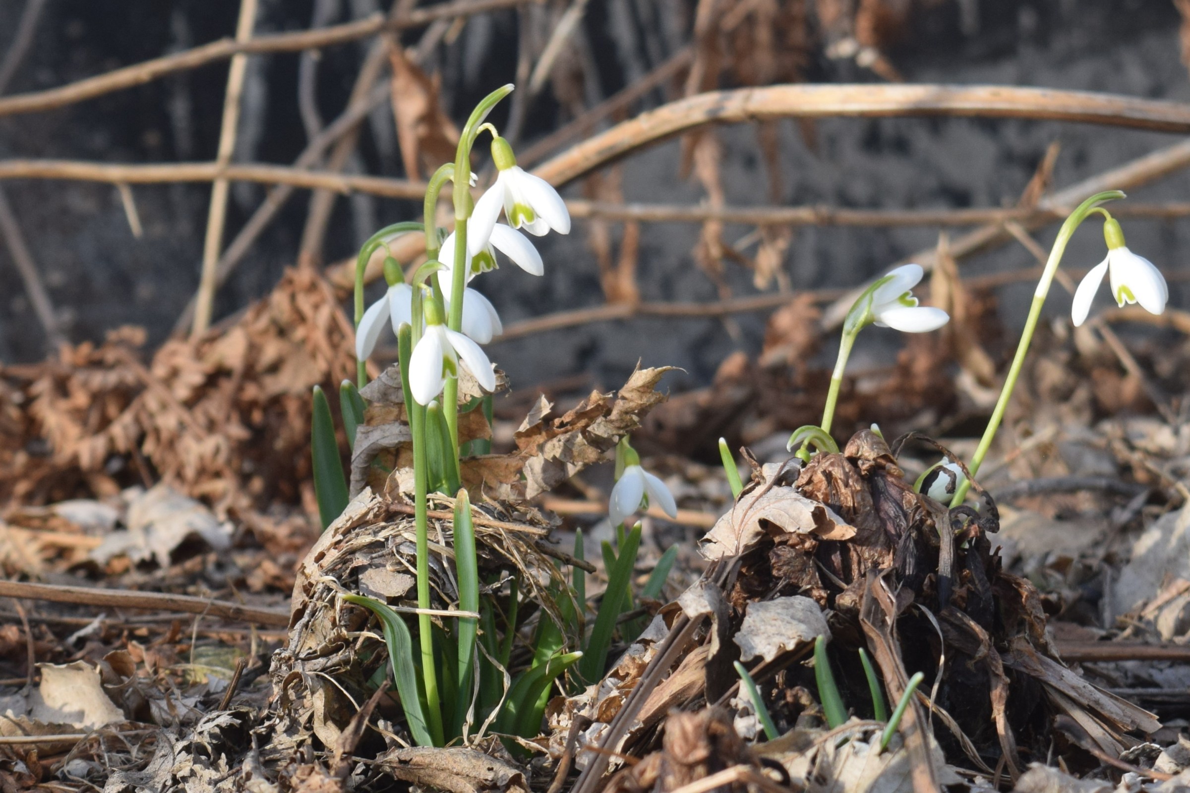The first of the Snowdrops (Galanthus nivalis) are blooming! This is a heartening development, as they are the first flowers of the season in our garden. They mark not so much the beginning of spring as the end of winter.