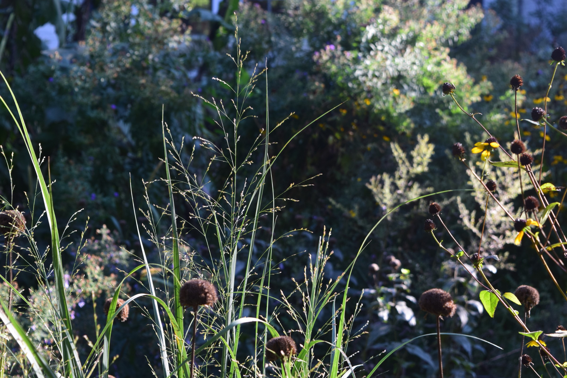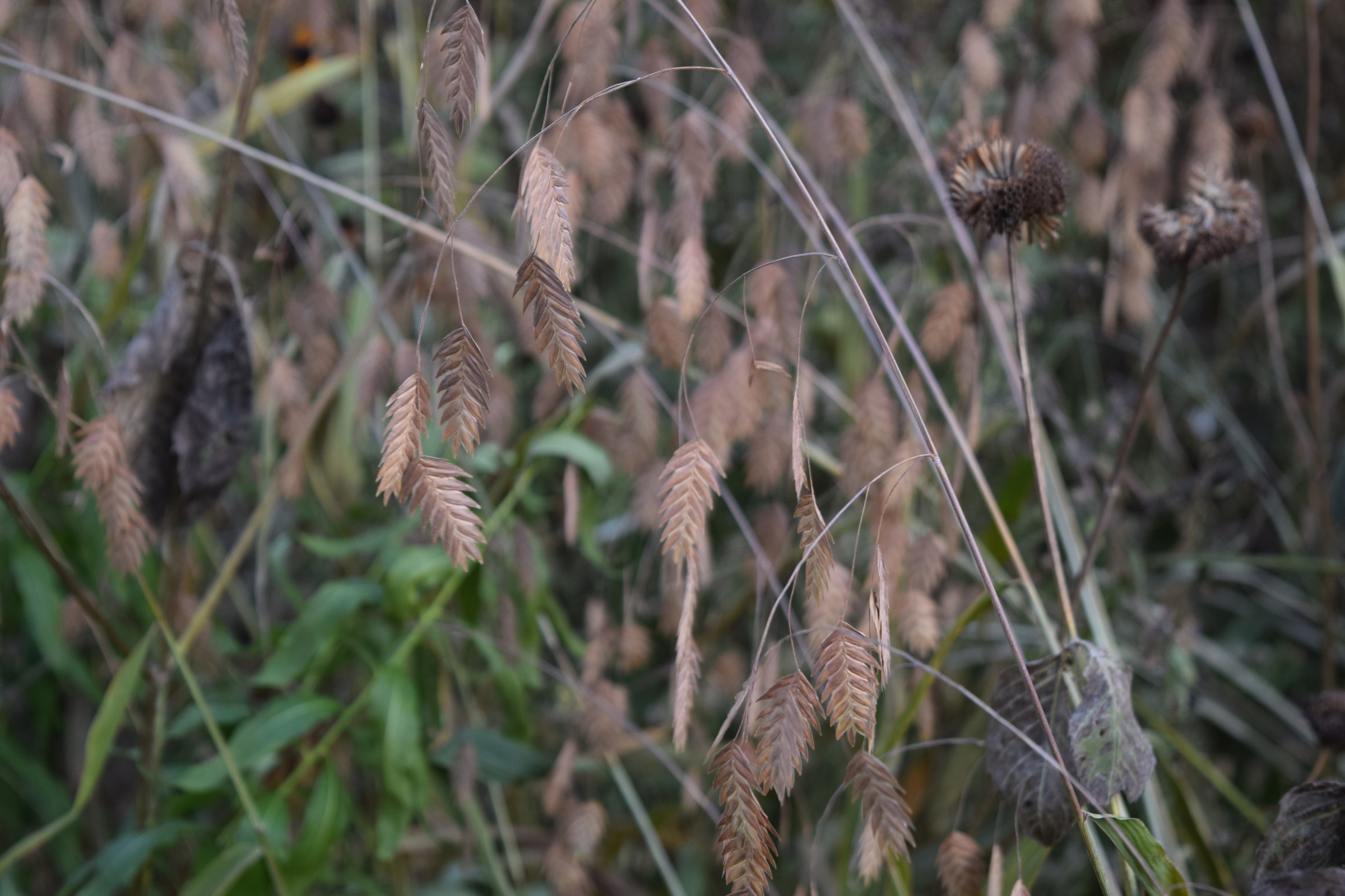 In Autumn grasses take a more prominent place in the garden. In our garden, there are two grasses that do really well: Sea Oats (Chasmanthium latifolium) and Switchgrass (Panicum virgatum). There are also sedges (Carex sp.) that do well, but that’s a different story.