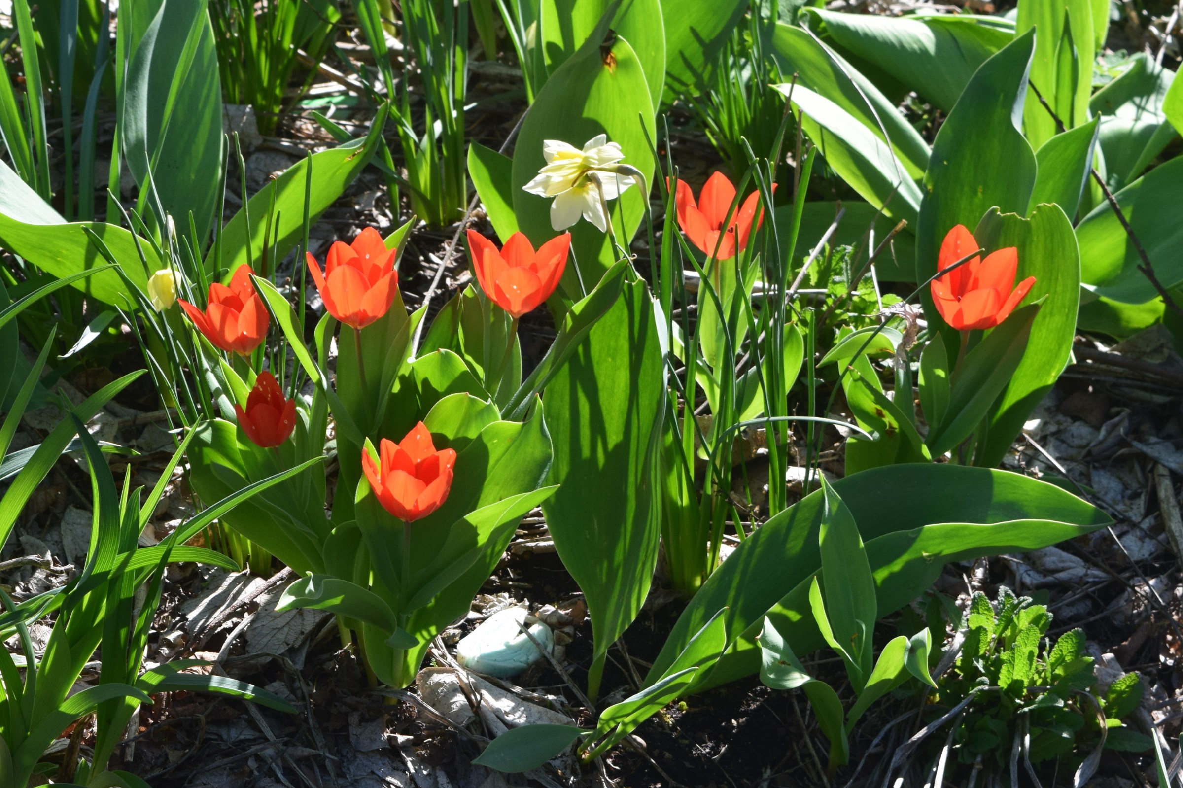 Tulip season has passed its peak around here, a peak that came early for some reason during this cold, dry spring. While several of my favorite Species Tulips have already come and gone, there are several still gracing us with their cheerful presence.